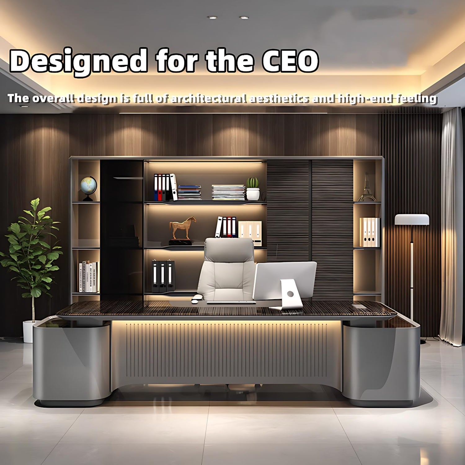 94IN Gray Executive Office Desk - Executive Desk with Drawer, Thick Worktop and Legs & Desktop Wire Box & Open Storage | Digital Password Lock & Quiet Slides
